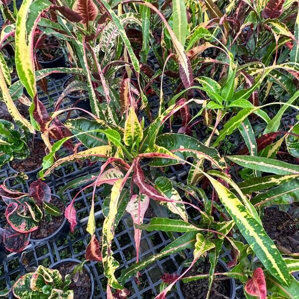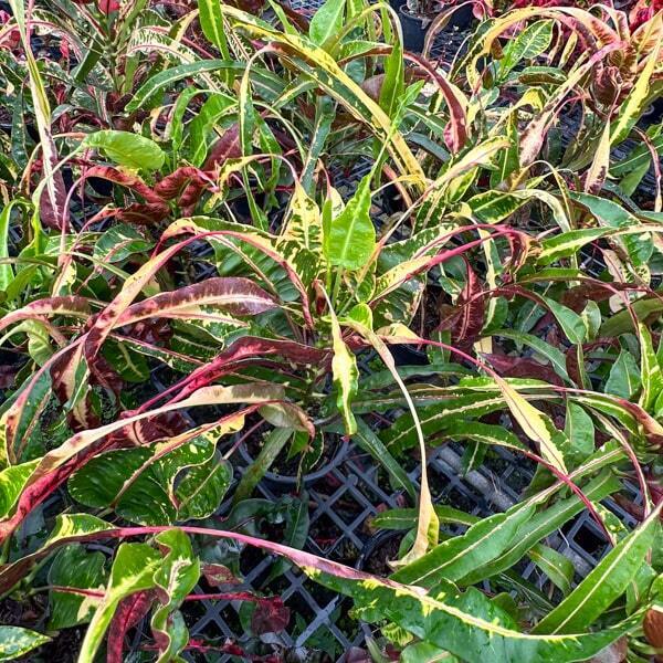 Окрас кротонов зависит от сезона. Даже яркие сорта могут приехать с зелеными листьями. По мере роста при достаточном количестве тепла и света при смене сезона они окрашиваются в сортовые цвета.