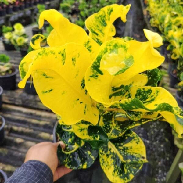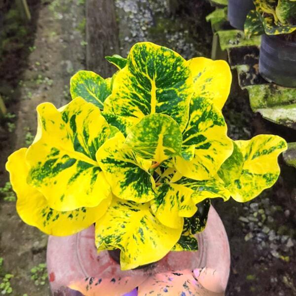 Окрас кротонов зависит от сезона. Даже яркие сорта могут приехать с зелеными листьями. По мере роста при достаточном количестве тепла и света при смене сезона они окрашиваются в сортовые цвета.