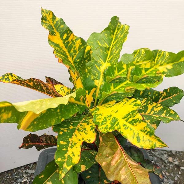 Окрас кротонов зависит от сезона. Даже яркие сорта могут приехать с зелеными листьями. По мере роста при достаточном количестве тепла и света при смене сезона они окрашиваются в сортовые цвета.