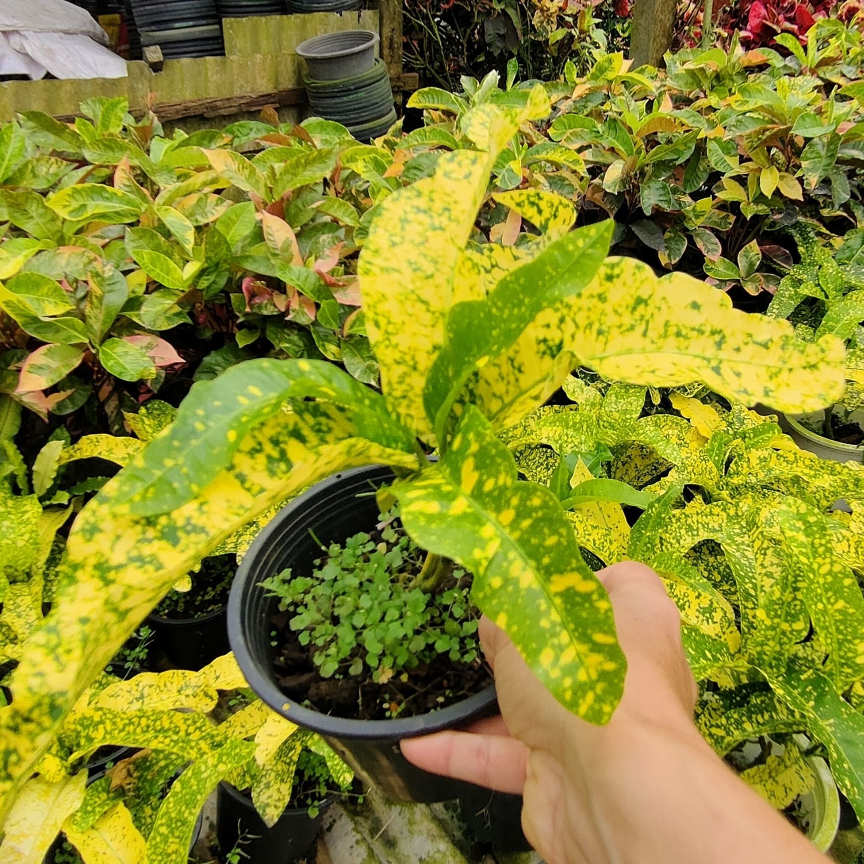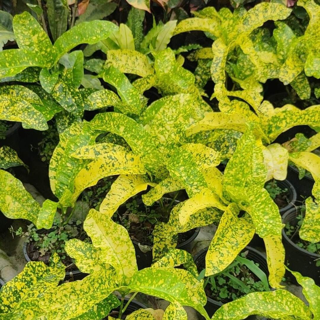 Окрас кротонов зависит от сезона. Даже яркие сорта могут приехать с зелеными листьями. По мере роста при достаточном количестве тепла и света при смене сезона они окрашиваются в сортовые цвета.