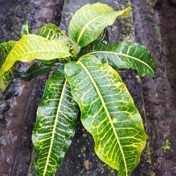 Окрас кротонов зависит от сезона. Даже яркие сорта могут приехать с зелеными листьями. По мере роста при достаточном количестве тепла и света при смене сезона они окрашиваются в сортовые цвета.