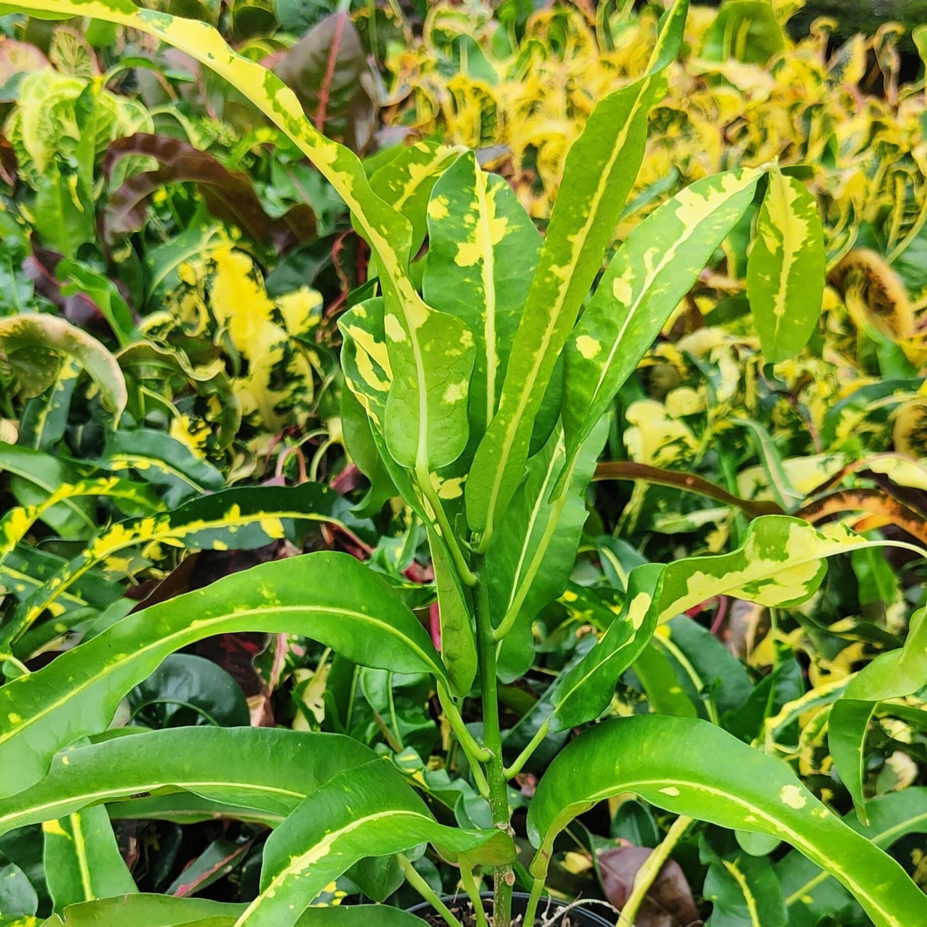 Окрас кротонов зависит от сезона. Даже яркие сорта могут приехать с зелеными листьями. По мере роста при достаточном количестве тепла и света при смене сезона они окрашиваются в сортовые цвета.