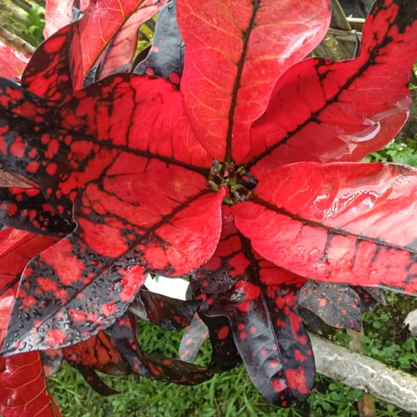 Окрас кротонов зависит от сезона. Даже яркие сорта могут приехать с зелеными листьями. По мере роста при достаточном количестве тепла и света при смене сезона они окрашиваются в сортовые цвета.