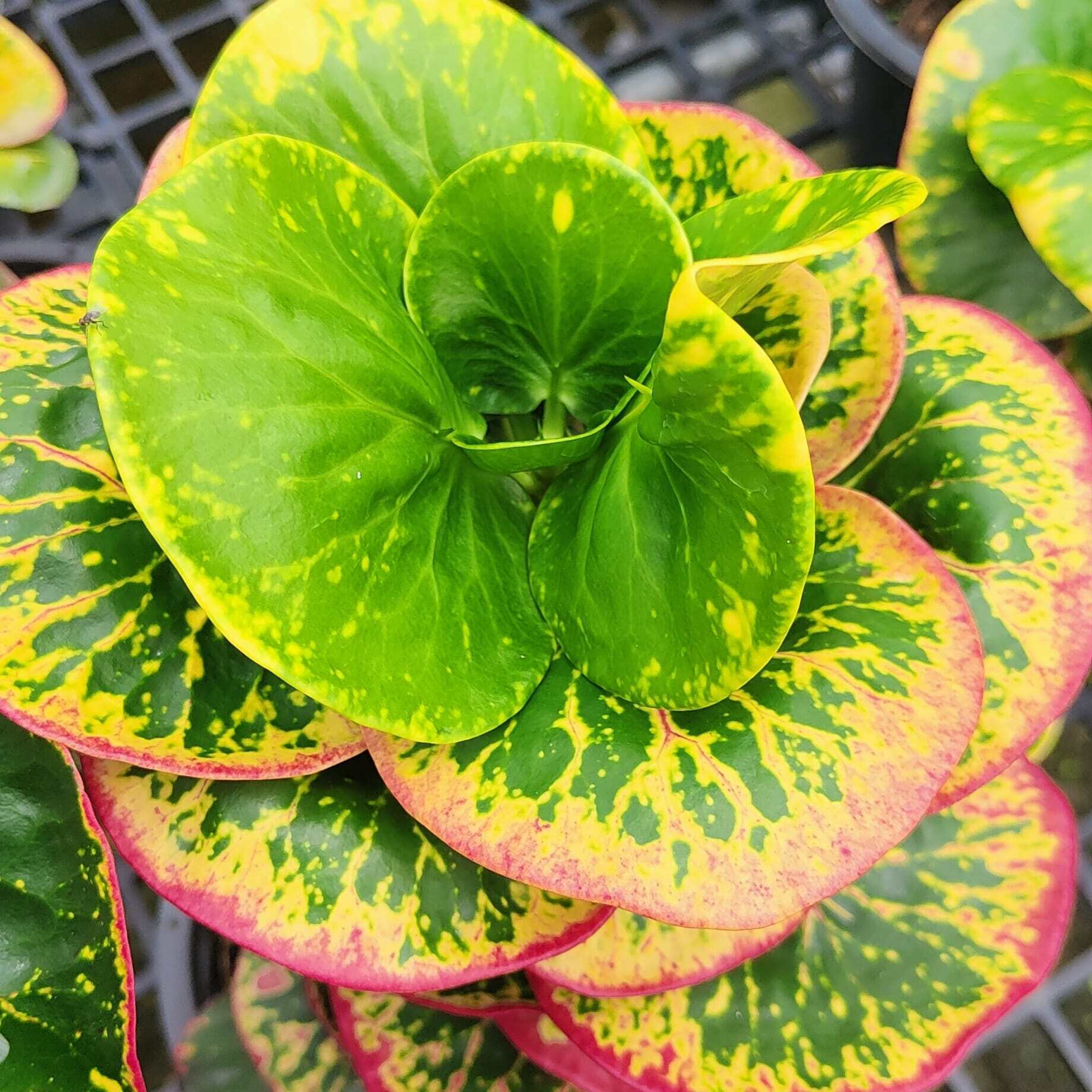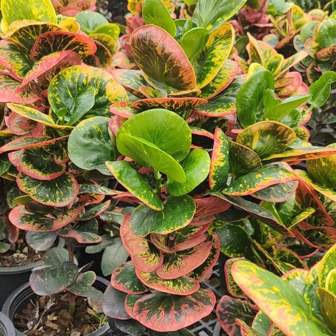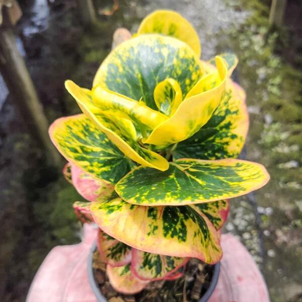 Окрас кротонов зависит от сезона. Даже яркие сорта могут приехать с зелеными листьями. По мере роста при достаточном количестве тепла и света при смене сезона они окрашиваются в сортовые цвета.
