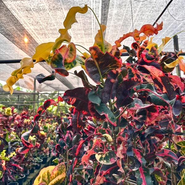 Окрас кротонов зависит от сезона. Даже яркие сорта могут приехать с зелеными листьями. По мере роста при достаточном количестве тепла и света при смене сезона они окрашиваются в сортовые цвета.