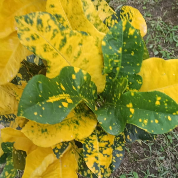 Окрас кротонов зависит от сезона. Даже яркие сорта могут приехать с зелеными листьями. По мере роста при достаточном количестве тепла и света при смене сезона они окрашиваются в сортовые цвета.