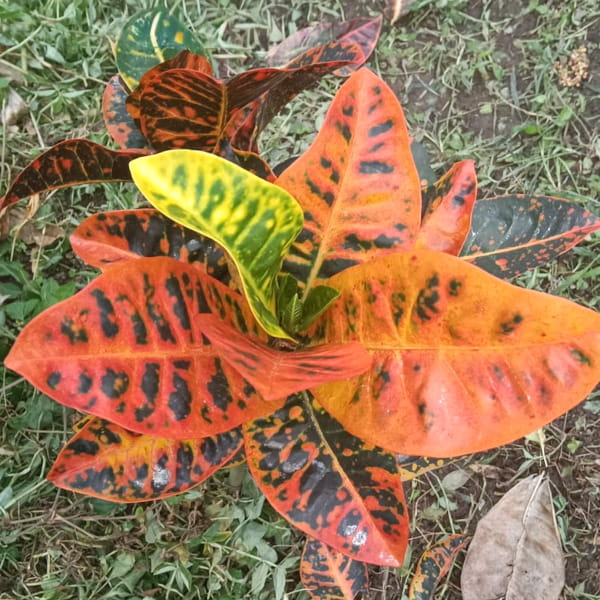 Окрас кротонов зависит от сезона. Даже яркие сорта могут приехать с зелеными листьями. По мере роста при достаточном количестве тепла и света при смене сезона они окрашиваются в сортовые цвета.