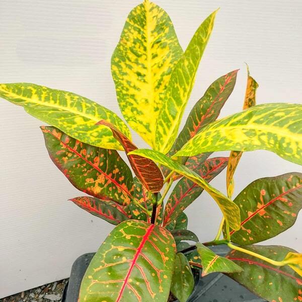 Окрас кротонов зависит от сезона. Даже яркие сорта могут приехать с зелеными листьями. По мере роста при достаточном количестве тепла и света при смене сезона они окрашиваются в сортовые цвета.
