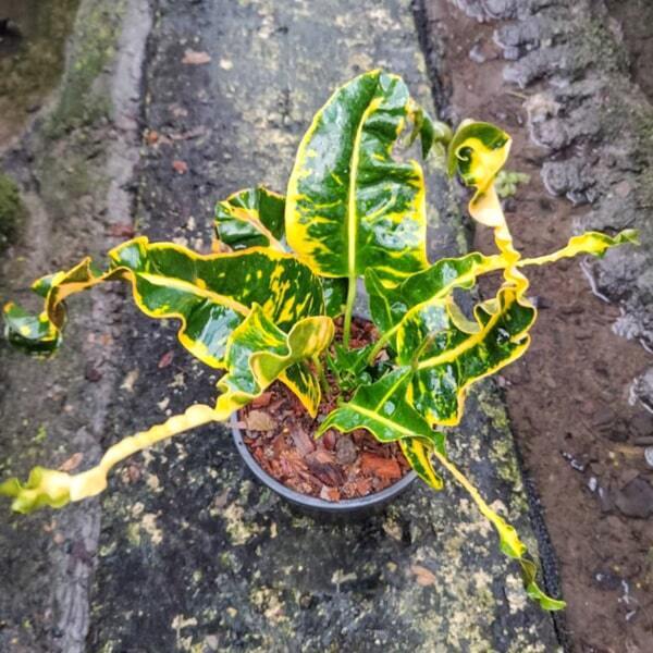 Окрас кротонов зависит от сезона. Даже яркие сорта могут приехать с зелеными листьями. По мере роста при достаточном количестве тепла и света при смене сезона они окрашиваются в сортовые цвета.