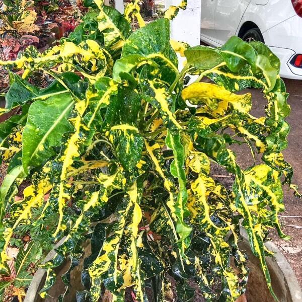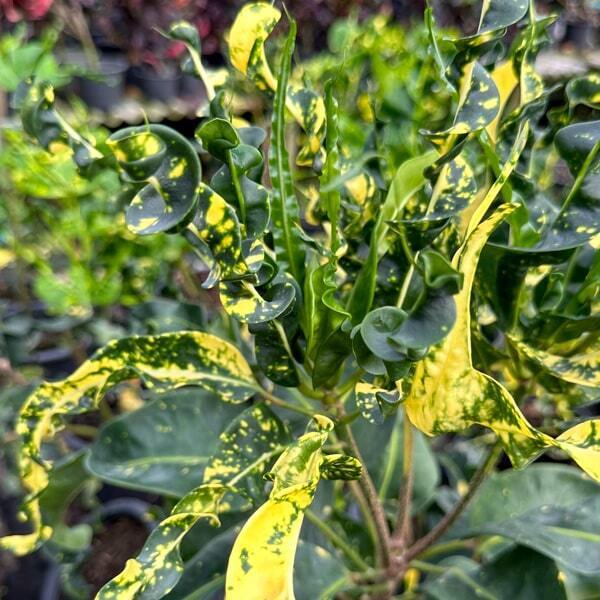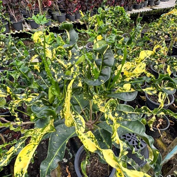 Окрас кротонов зависит от сезона. Даже яркие сорта могут приехать с зелеными листьями. По мере роста при достаточном количестве тепла и света при смене сезона они окрашиваются в сортовые цвета.
