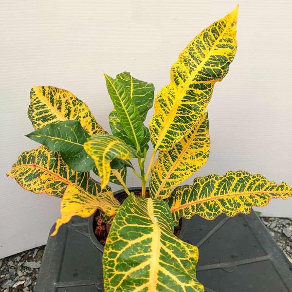 Окрас кротонов зависит от сезона. Даже яркие сорта могут приехать с зелеными листьями. По мере роста при достаточном количестве тепла и света при смене сезона они окрашиваются в сортовые цвета.