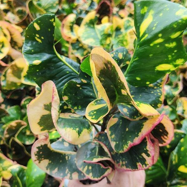 Окрас кротонов зависит от сезона. Даже яркие сорта могут приехать с зелеными листьями. По мере роста при достаточном количестве тепла и света при смене сезона они окрашиваются в сортовые цвета.