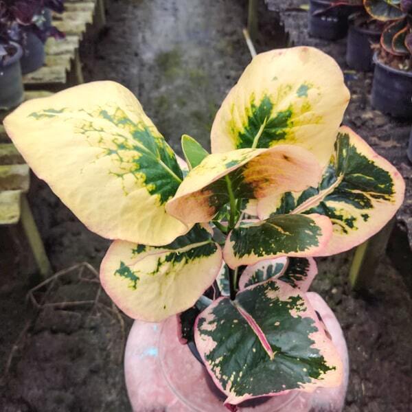 Окрас кротонов зависит от сезона. Даже яркие сорта могут приехать с зелеными листьями. По мере роста при достаточном количестве тепла и света при смене сезона они окрашиваются в сортовые цвета.