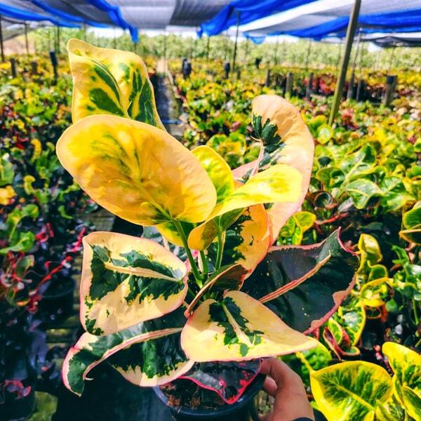 Окрас кротонов зависит от сезона. Даже яркие сорта могут приехать с зелеными листьями. По мере роста при достаточном количестве тепла и света при смене сезона они окрашиваются в сортовые цвета.