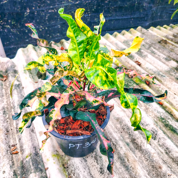 Окрас кротонов зависит от сезона. Даже яркие сорта могут приехать с зелеными листьями. По мере роста при достаточном количестве тепла и света при смене сезона они окрашиваются в сортовые цвета.