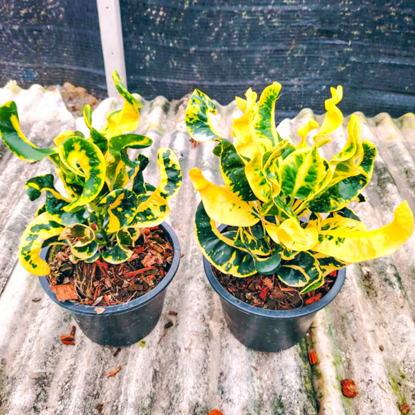 Окрас кротонов зависит от сезона. Даже яркие сорта могут приехать с зелеными листьями. По мере роста при достаточном количестве тепла и света при смене сезона они окрашиваются в сортовые цвета.