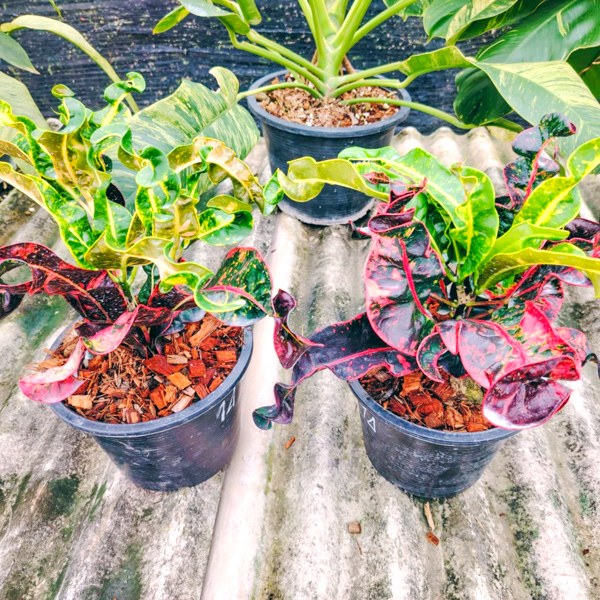 Окрас кротонов зависит от сезона. Даже яркие сорта могут приехать с зелеными листьями. По мере роста при достаточном количестве тепла и света при смене сезона они окрашиваются в сортовые цвета.