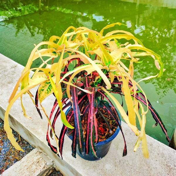 Окрас кротонов зависит от сезона. Даже яркие сорта могут приехать с зелеными листьями. По мере роста при достаточном количестве тепла и света при смене сезона они окрашиваются в сортовые цвета.