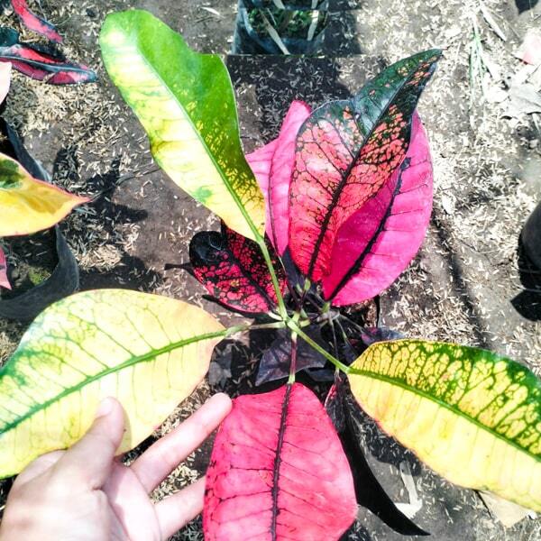Окрас кротонов зависит от сезона. Даже яркие сорта могут приехать с зелеными листьями. По мере роста при достаточном количестве тепла и света при смене сезона они окрашиваются в сортовые цвета.