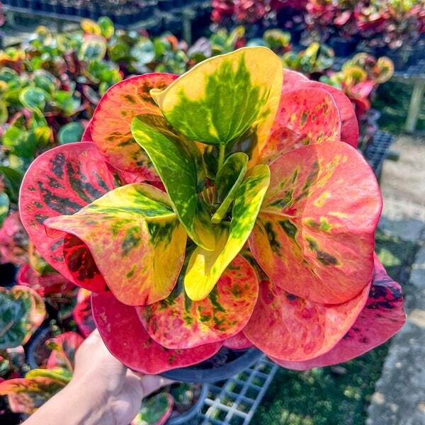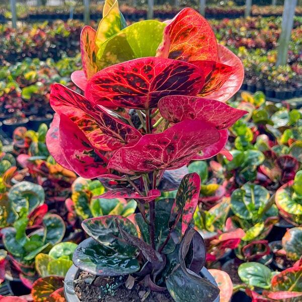 Окрас кротонов зависит от сезона. Даже яркие сорта могут приехать с зелеными листьями. По мере роста при достаточном количестве тепла и света при смене сезона они окрашиваются в сортовые цвета.