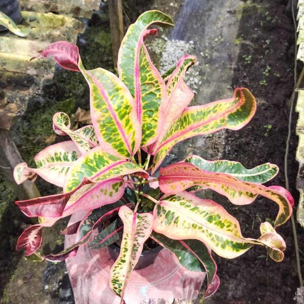 Окрас кротонов зависит от сезона. Даже яркие сорта могут приехать с зелеными листьями. По мере роста при достаточном количестве тепла и света при смене сезона они окрашиваются в сортовые цвета.