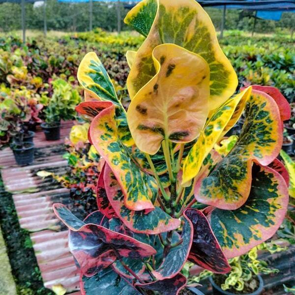Окрас кротонов зависит от сезона. Даже яркие сорта могут приехать с зелеными листьями. По мере роста при достаточном количестве тепла и света при смене сезона они окрашиваются в сортовые цвета.