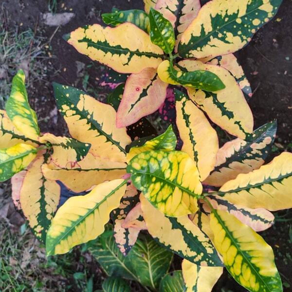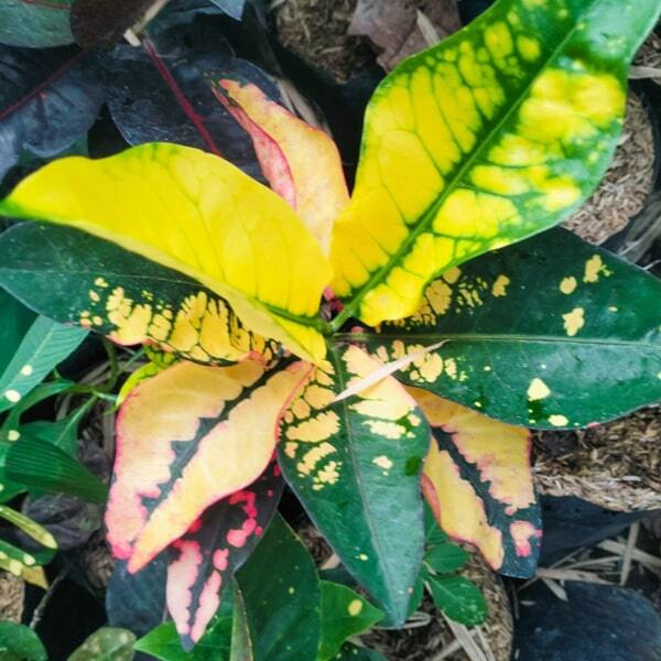Окрас кротонов зависит от сезона. Даже яркие сорта могут приехать с зелеными листьями. По мере роста при достаточном количестве тепла и света при смене сезона они окрашиваются в сортовые цвета.