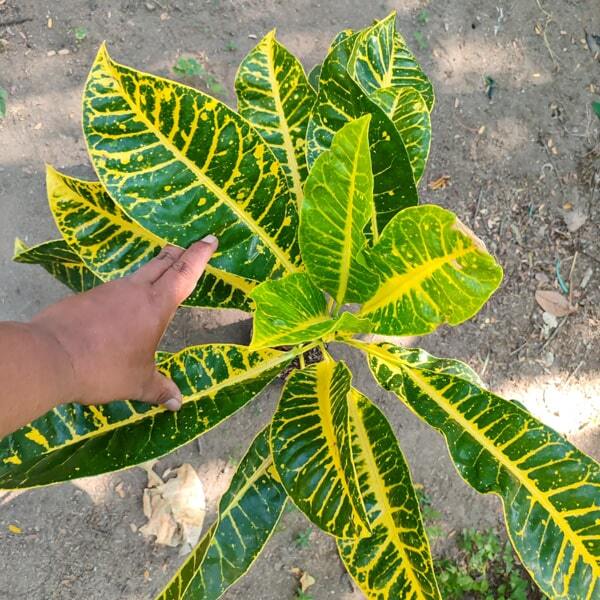 Окрас кротонов зависит от сезона. Даже яркие сорта могут приехать с зелеными листьями. По мере роста при достаточном количестве тепла и света при смене сезона они окрашиваются в сортовые цвета.