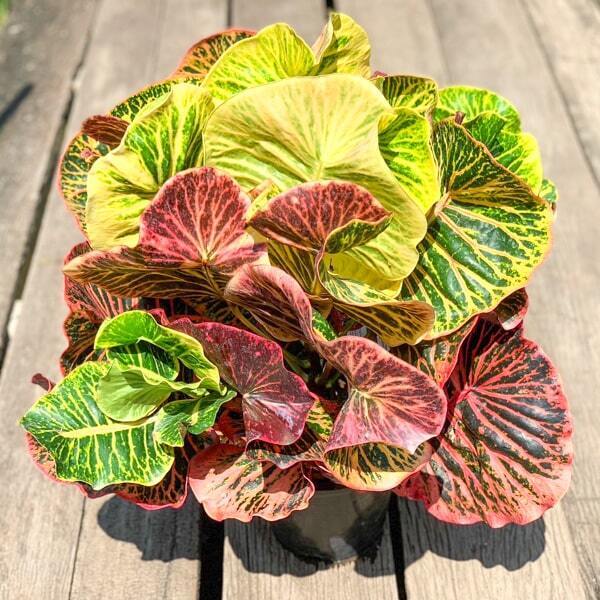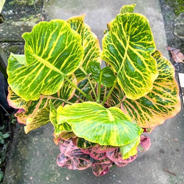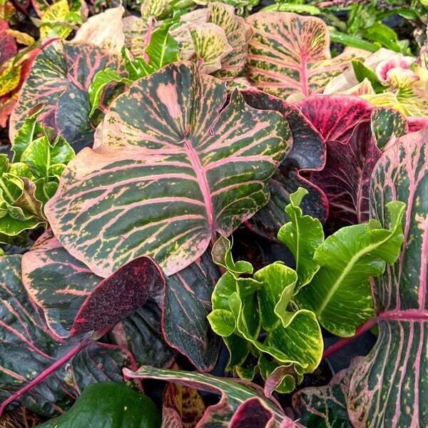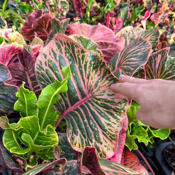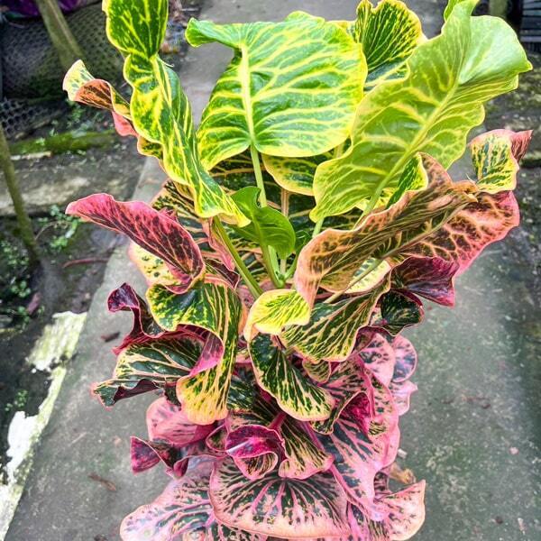Окрас кротонов зависит от сезона. Даже яркие сорта могут приехать с зелеными листьями. По мере роста при достаточном количестве тепла и света при смене сезона они окрашиваются в сортовые цвета.