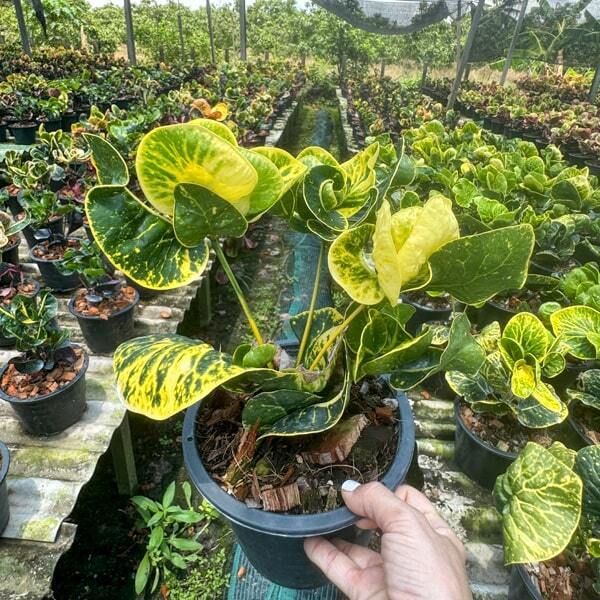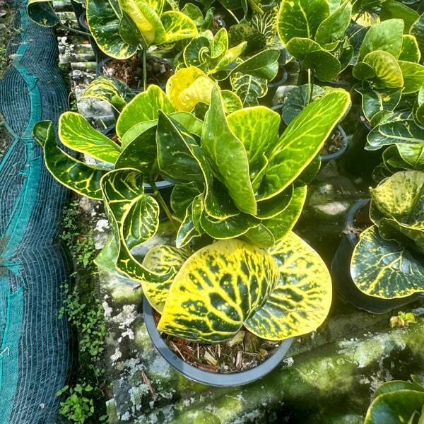 Окрас кротонов зависит от сезона. Даже яркие сорта могут приехать с зелеными листьями. По мере роста при достаточном количестве тепла и света при смене сезона они окрашиваются в сортовые цвета.
