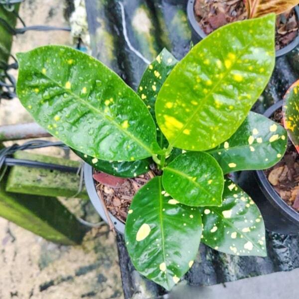 Окрас кротонов зависит от сезона. Даже яркие сорта могут приехать с зелеными листьями. По мере роста при достаточном количестве тепла и света при смене сезона они окрашиваются в сортовые цвета.