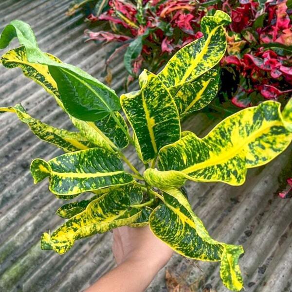 Окрас кротонов зависит от сезона. Даже яркие сорта могут приехать с зелеными листьями. По мере роста при достаточном количестве тепла и света при смене сезона они окрашиваются в сортовые цвета.