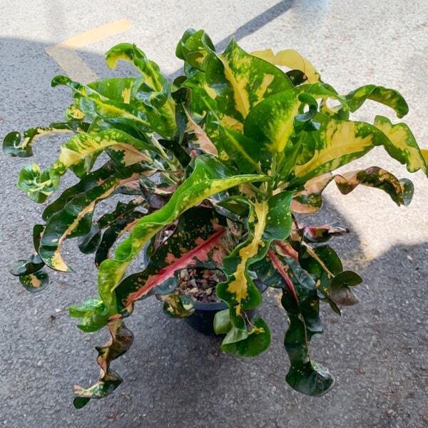 Окрас кротонов зависит от сезона. Даже яркие сорта могут приехать с зелеными листьями. По мере роста при достаточном количестве тепла и света при смене сезона они окрашиваются в сортовые цвета.