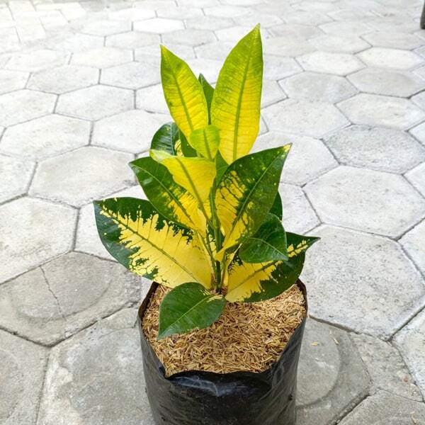 Окрас кротонов зависит от сезона. Даже яркие сорта могут приехать с зелеными листьями. По мере роста при достаточном количестве тепла и света при смене сезона они окрашиваются в сортовые цвета.