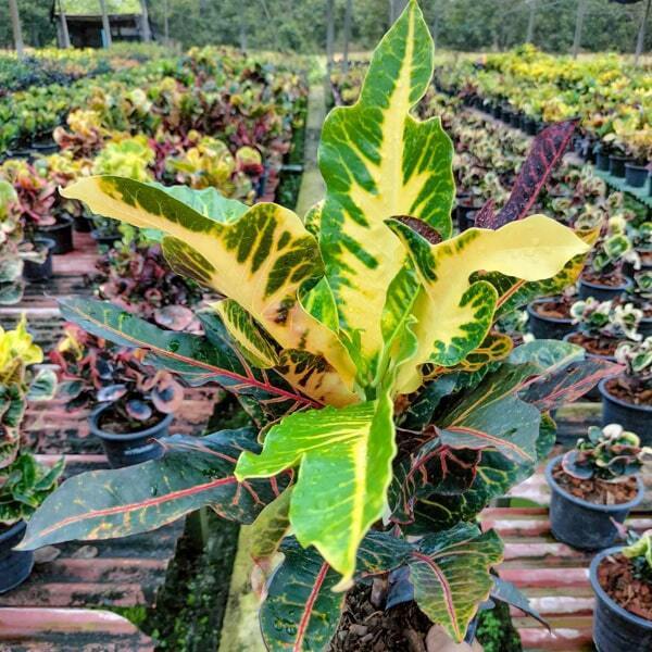 Окрас кротонов зависит от сезона. Даже яркие сорта могут приехать с зелеными листьями. По мере роста при достаточном количестве тепла и света при смене сезона они окрашиваются в сортовые цвета.