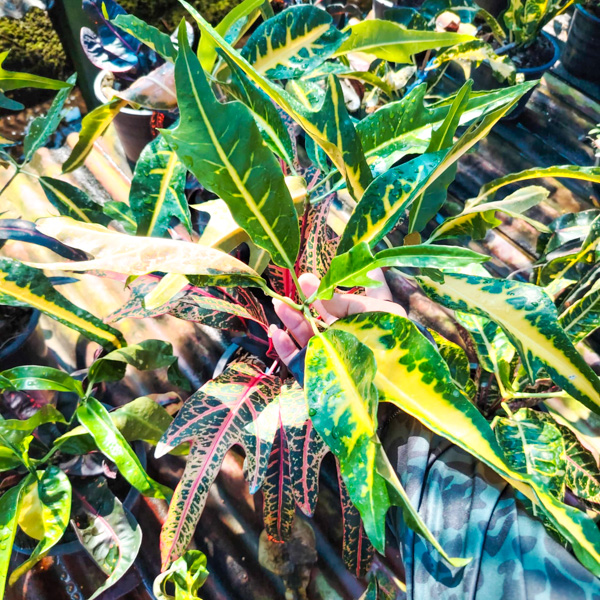 Окрас кротонов зависит от сезона. Даже яркие сорта могут приехать с зелеными листьями. По мере роста при достаточном количестве тепла и света при смене сезона они окрашиваются в сортовые цвета.
