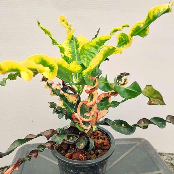 Окрас кротонов зависит от сезона. Даже яркие сорта могут приехать с зелеными листьями. По мере роста при достаточном количестве тепла и света при смене сезона они окрашиваются в сортовые цвета.