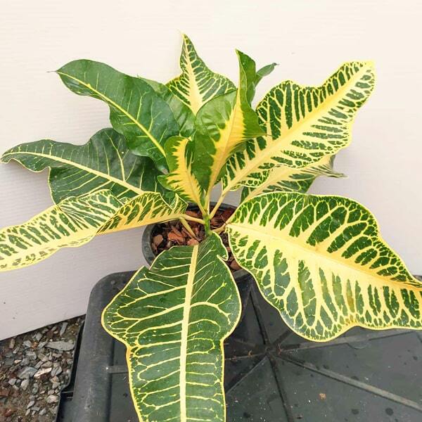 Окрас кротонов зависит от сезона. Даже яркие сорта могут приехать с зелеными листьями. По мере роста при достаточном количестве тепла и света при смене сезона они окрашиваются в сортовые цвета.