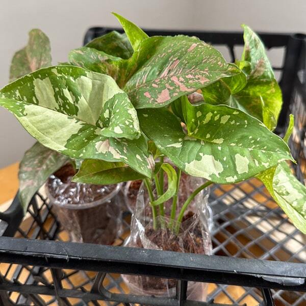 При получении обработайте сингониум (по желанию) фунгицидом – можно, например, добавить в грунт фитоспорин и пересадите в горшок с легким слабо-кислым или кислым субстратом (pH 5,5-6,5). Сингониумам подойдет любой универсальный грунт для ароидных. Важно следить, чтобы грунт был легким. Можно разбавить универсальный грунт кокосовым либо нейтральным торфом и перлитом. Сингониумы хорошо адаптируются в обычных домашних условиях, но оценят и тепличку, которая обеспечит им повышенную влажность для скорейшего набора корней и новых листьев. В качестве теплички можно использовать прозрачный пакет или зип-пакет.