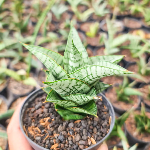 Сансевиерии с ОКС без транспортировочного стаканчика или грунта. Размер растений разнится в зависимости от вида и сорта и представлен на фото в карточке товара.
