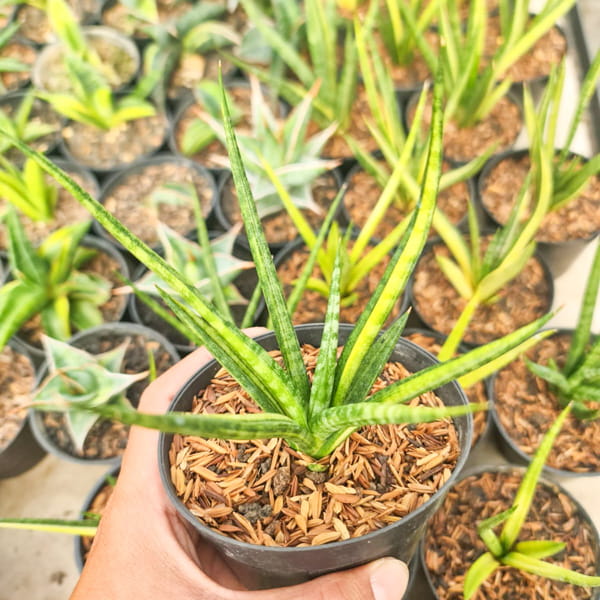 Сансевиерии с ОКС без транспортировочного стаканчика или грунта. Размер растений разнится в зависимости от вида и сорта и представлен на фото в карточке товара.
