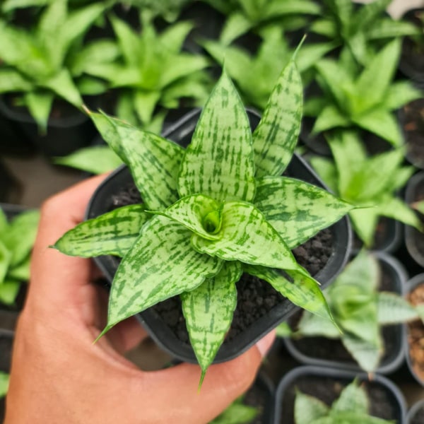 Сансевиерии с ОКС без транспортировочного стаканчика или грунта. Размер растений разнится в зависимости от вида и сорта и представлен на фото в карточке товара.