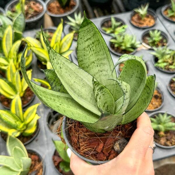 Сансевиерии с ОКС без транспортировочного стаканчика или грунта. Размер растений разнится в зависимости от вида и сорта и представлен на фото в карточке товара.